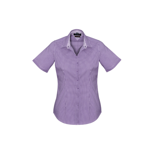 Cotton-rich fabric provides a soft hand feel, with the durability of polyester. Yarn dyed gingham check for a premium look, with added Elastane for comfort and stretch. Gentle machine wash and cool iron.